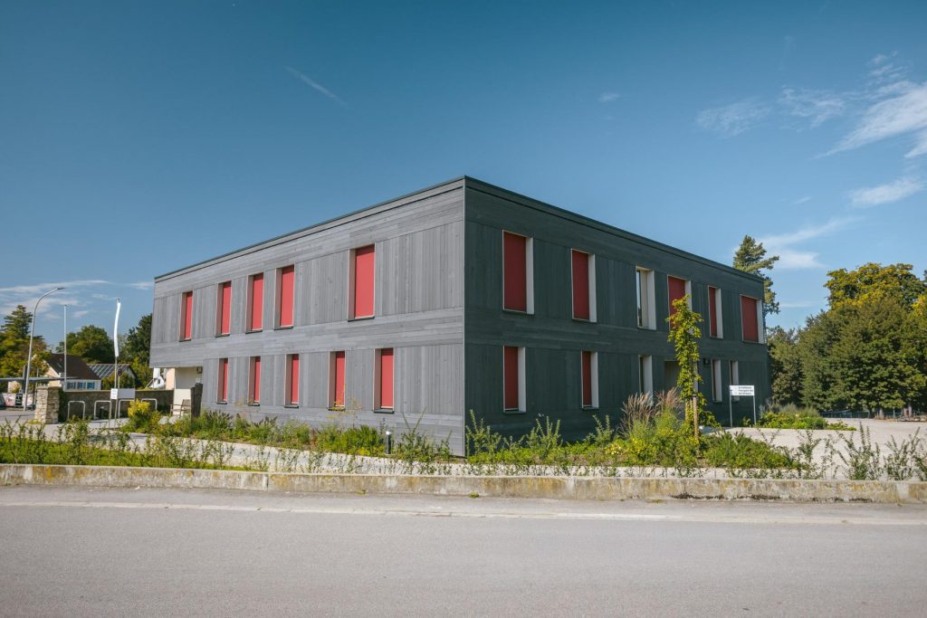 Mit dem Gesundheitszentrum F1c in Abensberg haben wir ein ökologisches Vorzeigeprojekt in massiver Holz100-Bauweise realisiert, das dank innovativer Technik wie Solar-Wasserstoffsystem, Ringgrabenkollektor und Erdwärmepumpe vollständig energieautark arbeitet. Das Projekt bietet höchsten Schallschutz, wurde mit dem Klimapreis 2025 ausgezeichnet und ist zudem mit dem Zertifikat „Bayern Barrierefrei“ prämiert.