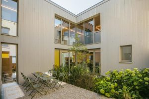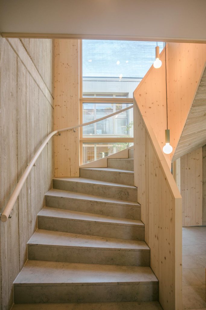 Gebaut wurde das F1c komplett aus Holz100-Massivholz, also aus reinem, unbehandeltem Vollholz – ohne Leim, ohne Chemie. Rund 150 Bäume bilden die Basis dieses Gebäudes. Sie speichern etwa 200 Tonnen CO₂ und zeigen eindrucksvoll, dass nachhaltiges Bauen auch ästhetisch und funktional überzeugen kann.